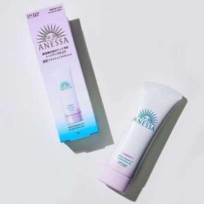 This brightening UV sunscreen gel in a purple-tinted formula corrects skin tone to minimize the appearance of sunspots for a radiant finish. Waterproof product won’t smudge under a mask, and can be used as a makeup base. To remove, use soap and water; sunscreen doesn’t require excessive rubbing to be washed off.