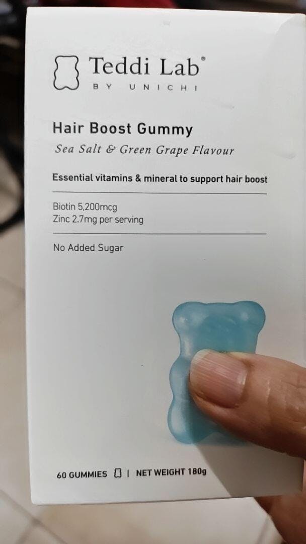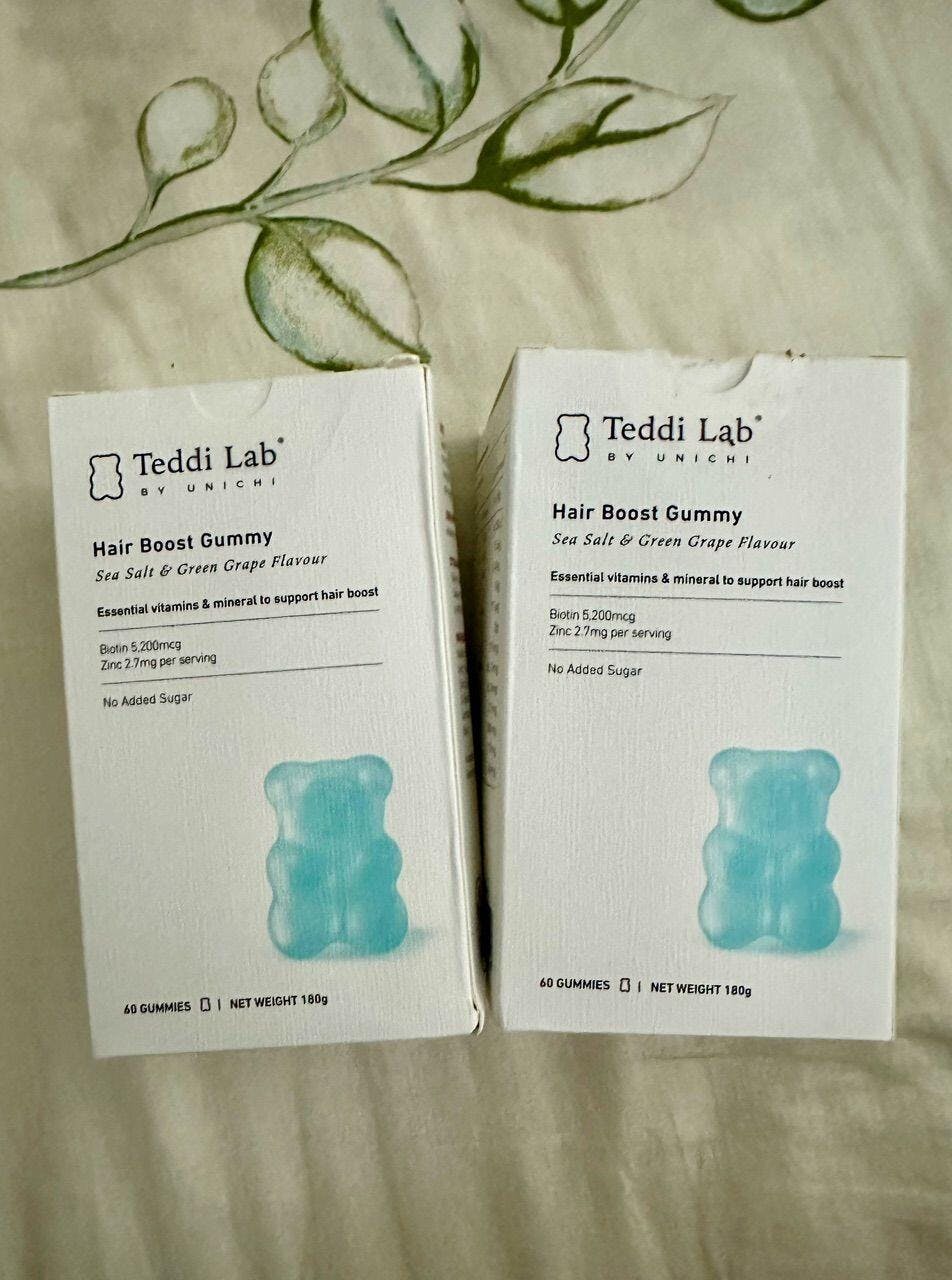 Unichi Teddi Lab Hair Boost Gummy Biotiini + Sinkki Gummy - Merisuola + Vihreä Viinirypäle Makua 60 Karkkia