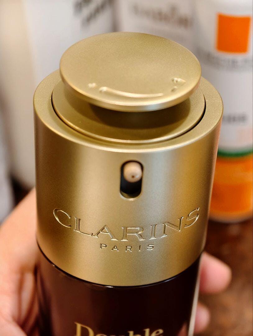 - Ambil sedikit Double Serum dan hangatkan di telapak tangan.