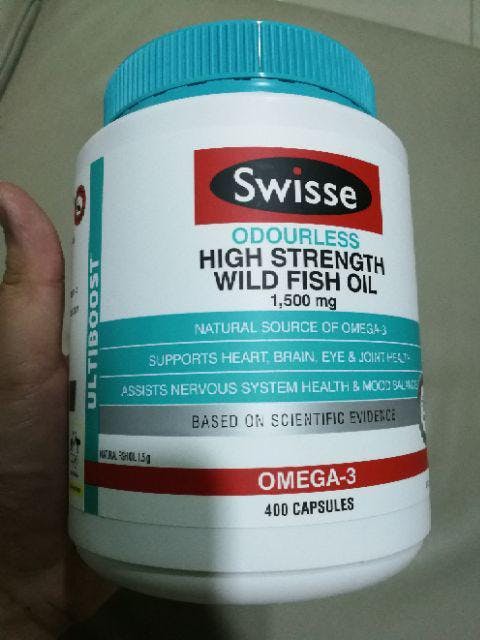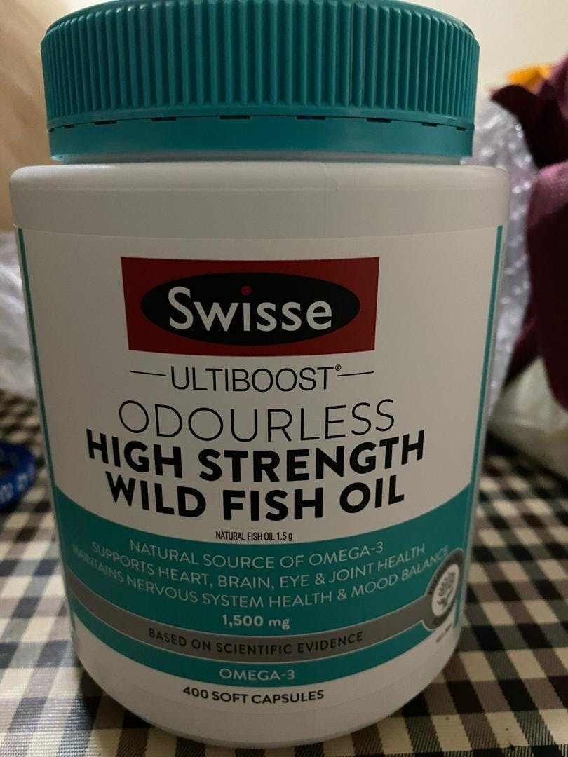 Setiap kapsul Swisse Ultiboost Odourless High Strength Wild Fish Oil mengandung 50% lebih banyak omega-3 dibanding kapsul minyak ikan standar 1000 mg. Kapsul ini bebas dari rasa atau bau 'ikhlan'.
