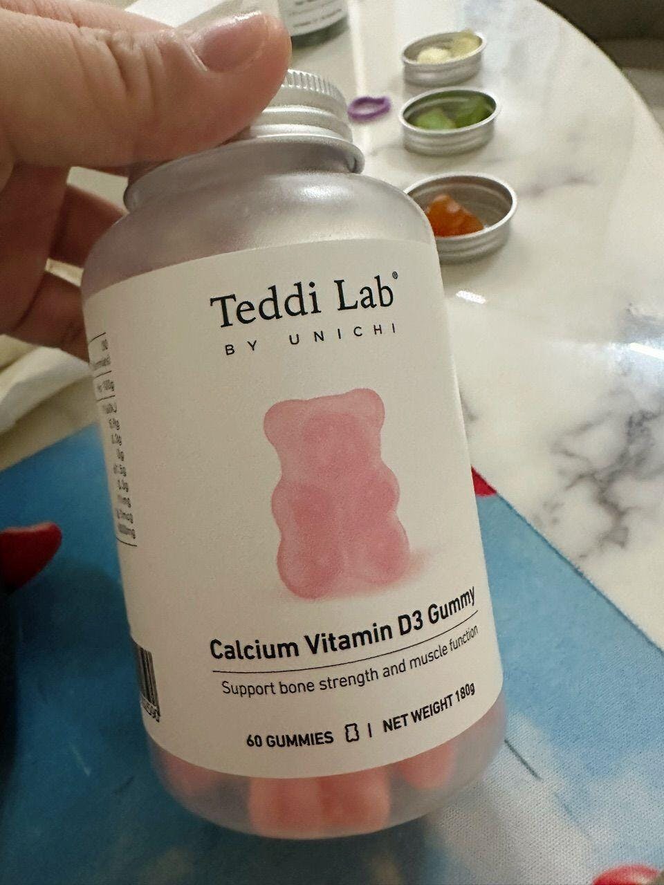 Il Gummy di Calcio e Vitamina D3 di Teddi Lab è formulato per la forza delle ossa e la funzione muscolare, mantenendo una densità ossea sana e denti forti.