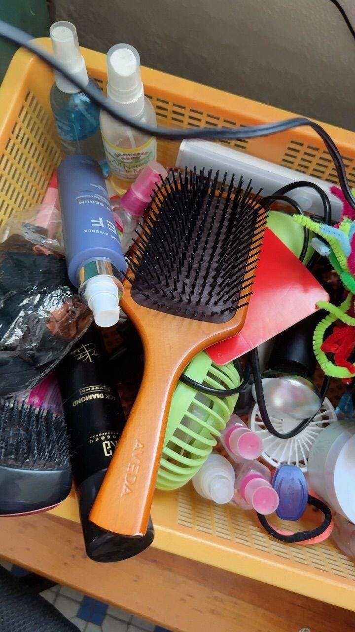 - Houd je borstel schoon: verwijder eerst overtollig haar, week de borstel in warm water met een beetje Aveda Hair Detoxifier. Spoel af met schoon water, schud droog of dep droog met een handdoek, en plaats hem dan met de borstelharen naar beneden op een handdoek om lucht te drogen.