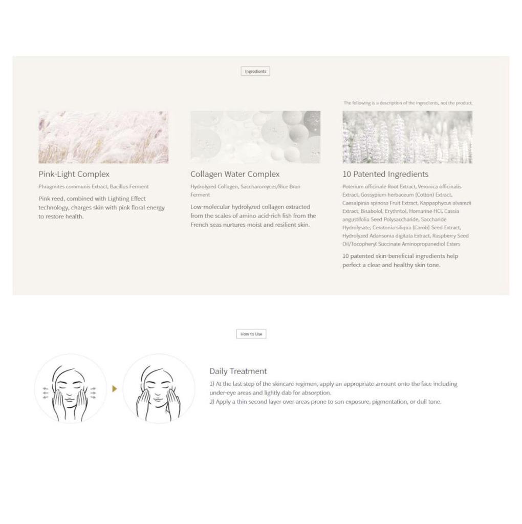 AHC's exclusively developed tone-enhancement cream for youthful radiance, volume, and coverage.