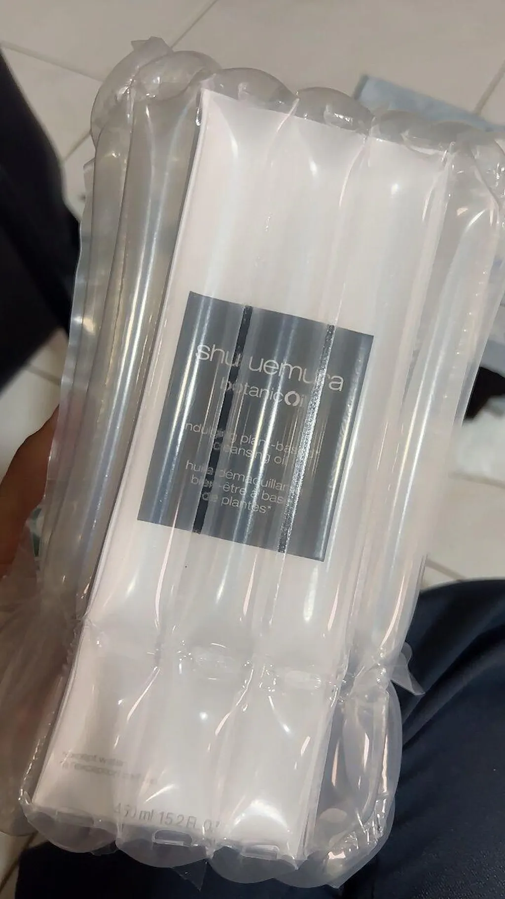 1. take 3-4 pumps of cleansing oil onto the palms of hands.