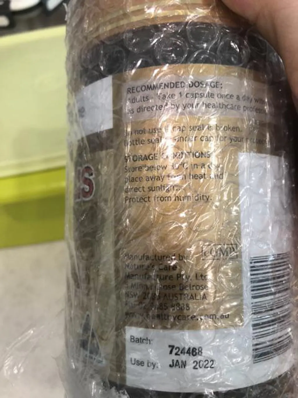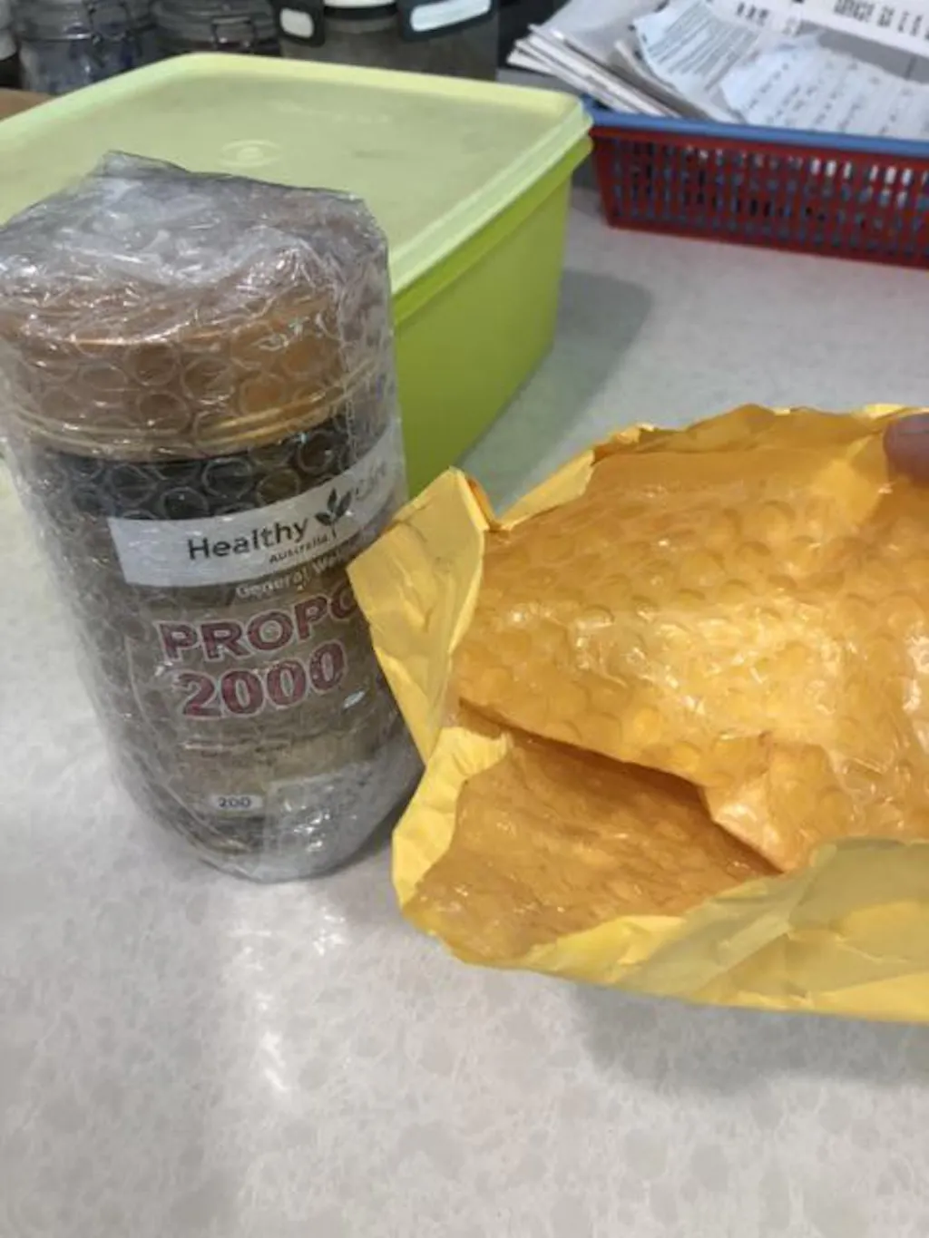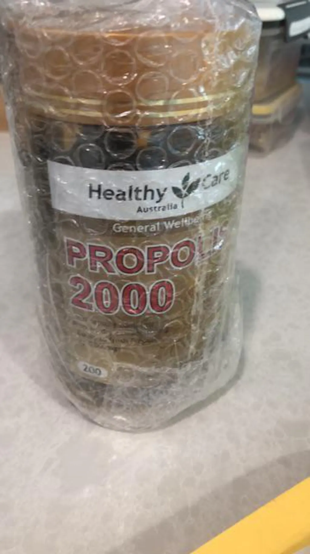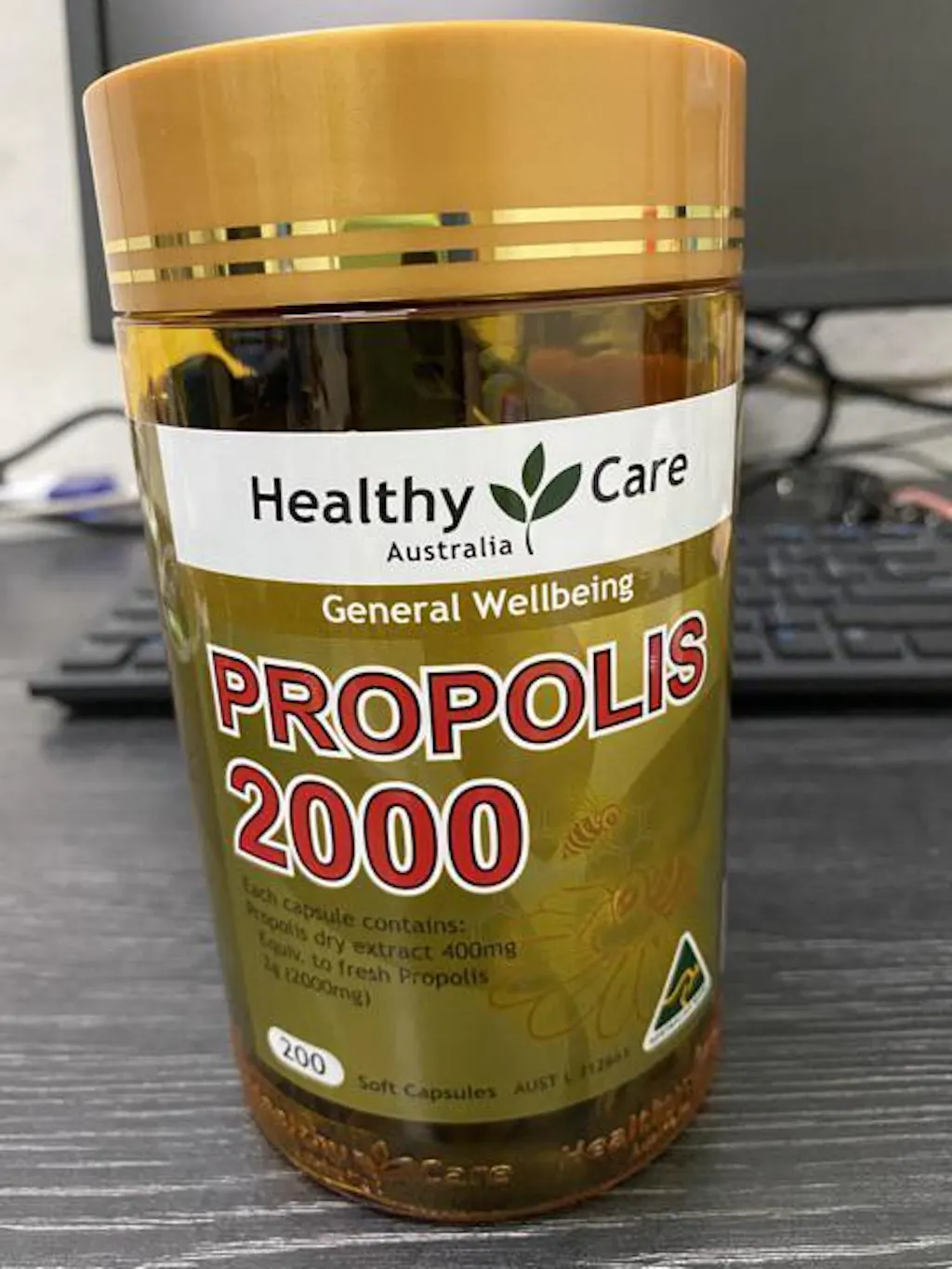 *Vänligen kontakta oss för att kontrollera utgångsdatum först Allmän information Hjälper till att bibehålla allmänt välbefinnande. Varningar Propolis kan orsaka allergiska reaktioner. Om irritation eller svullnad i mun eller svalg uppstår, avbryt användningen. Använd INTE om förseglingen över locket är bruten. Flaskan är förseglad under locket för din skydd. Ingredienser Varje mjuk kapsel innehåller: Propolis torerextrakt 400 mg Motsvarar färsk propolis (2000 mg) 2g Inget tillsatt socker, stärkelse, jäst, salt eller artificiella smaker. Användningsanvisningar Vuxna: Tag 1 kapsel en gång dagligen med en måltid eller enligt anvisning från din vårdpersonal. FÖRVARINGSFÖRHÅLLANDEN: Förvaras under 30C på en torr plats borta från värme och direkt solljus.